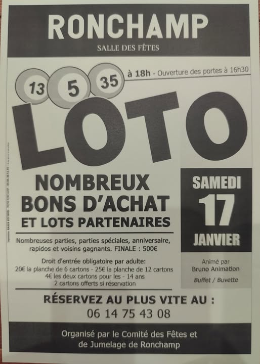 LOTO du Comité des Fêtes et de Jumelage de Ronchamp