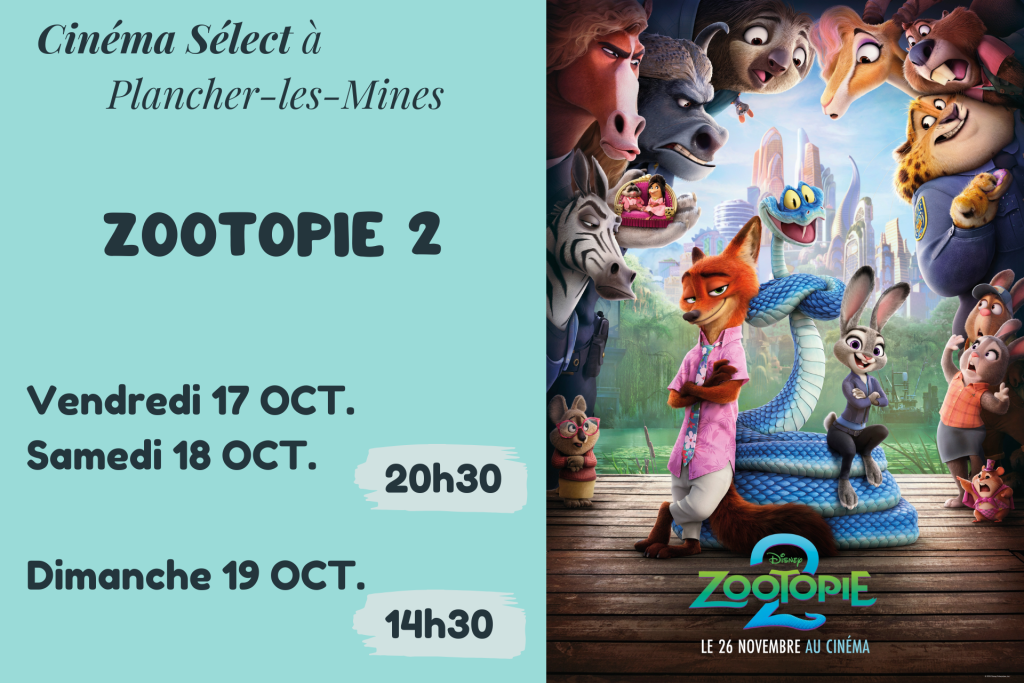 Film « ZOOTOPIE 2 » au CINEMA SELECT à PLANCHER-les-MINES