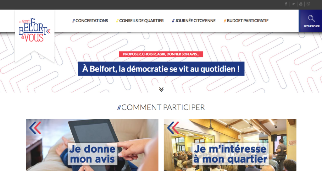 La municipalité de Belfort vient de faire un lifting de son outil de participation de la population, le site belfortetvous.fr . « Les Belfortains sont et resteront au cœur des décisions de la Ville de Belfort. Ainsi, à travers ce site internet et les actions menées sur le terrain, la parole est donnée aux habitants de façon à construire la Ville avec eux », écrit la municipalité dans un communiqué de presse. « C’est un site incontournable pour devenir acteur de sa ville, confie Rachel Horlacher, adjointe au maire chargée de la démocratie locale. La démocratie participative en ligne permet au plus grand nombre de participer aux décisions qui le concernent. » Le site Web est construit autour de 4 thématiques : les consultations citoyennes ; le conseils de quartier ; le budget participatif ; la journée citoyenne. Le premier vise à recueillir l’avis des belfortains sur différents sujets, « comme le changement de sens de circulation dans une rue, un projet pour un quartier ou pour la ville, le Plan local d’urbanisme (PLU) ». L’onglet sur les conseils de quartier avec une consultation possible des documents liés aux enquêtes publiques regroupe toutes les infos sur ces instances de consultation : la présentation des quartiers, le fonctionnement des conseils de quartier, la liste des présidents, les dates des réunions, les comptes rendus… Dans la partie sur le budget participatif, les habitants « peuvent déposer leurs idées ». Dans l’espace dédié à la journée citoyenne, « les habitants trouveront toutes les informations concernant la journée citoyenne et pourront s’inscrire dans les différents chantiers proposés au public ».