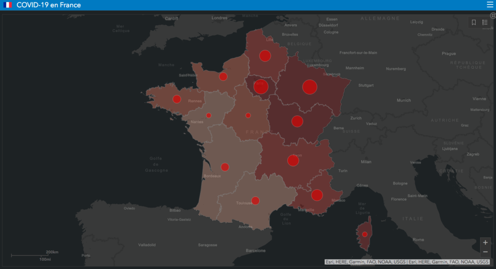 « La situation continue de s’aggraver. » La phrase revient en boucle dans chacun des communiqués de presse de l’agence régionale de santé (ARS) Grand Est sur la progression du Covid-19. Et chaque jour aussi depuis le début de la pandémie, le nombre de contaminations et de décès ne cesse d’augmenter. Lundi soir, dans les dix départements du Grand Est, l’agence dénombrait ainsi 2 348 personnes infectées par le virus, dont 526 en réanimation. 335 personnes ont succombé dans la région. C’est plus d’un tiers des morts dénombrés en France, où le Covid-19 a fait 860 morts, alors que la région accueille 8,35 % de la population totale (données Insee, population totale au 1er janvier 2017). En Bourgogne-Franche-Comté, 62 décès en établissements de santé (soit 7,2 % des décès enregistrés en France) étaient enregistrés ce lundi 23 mars, 410 patients étaient hospitalisés, dont 115 en réanimation. La Bourgogne-Franche-Comté accueille 4,26 % de la population française.